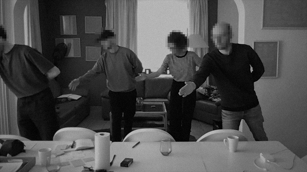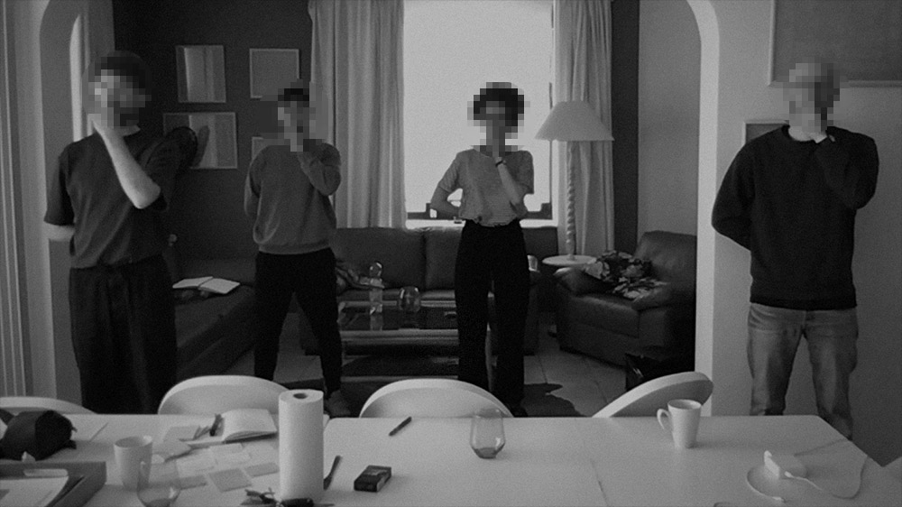 Enkele videostills uit een proefopname voor de choreografie van de spelregels.