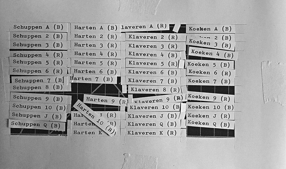 Het verloop van de tekstelementen bij het assembleren van zine N° 0.
